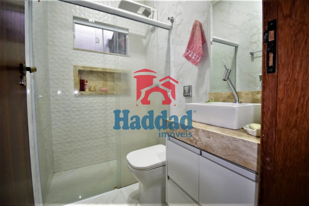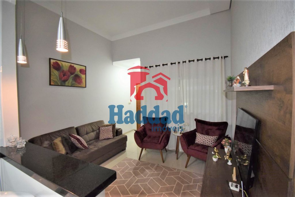 CASA COM DOIS DORMITÓRIOS COM AR CONDICIONADO E VENTILADOR DE TETO, UM WC COM REVESTIMENTO ATÉ O TETO, BOX EM VIDRO TEMPERADO, NICHO, E PIA ESCULPIDA EM PORCELANATO COM GABINETE, SALA COM PÉ DIREITO ALTO, COZINHA COM PIA GRANDE E GABINETE, REVESTIMENTO ATÉ O TETO . GARAGEM COBERTA PARA DOIS CARROS POPULAR. ÁREA DE LAZER COM CHURRASQUEIRA E BALCÃO. CASA COM FINO ACABAMENTO ILUMINAÇÃO EM LED E PISO EM PORCELANATO Ref. 14724 R$ 270.000,00 Haddad Imóveis 3211-7666 Creci 9.771-J.2ª Região