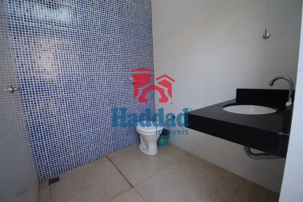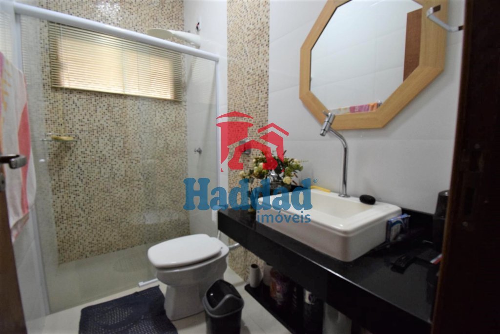 UM BANHEIRO NO PORCELANATO, BLINDEX E EQUIPADO PARA USO COM TORNEIRA HIGIÊNCIA.